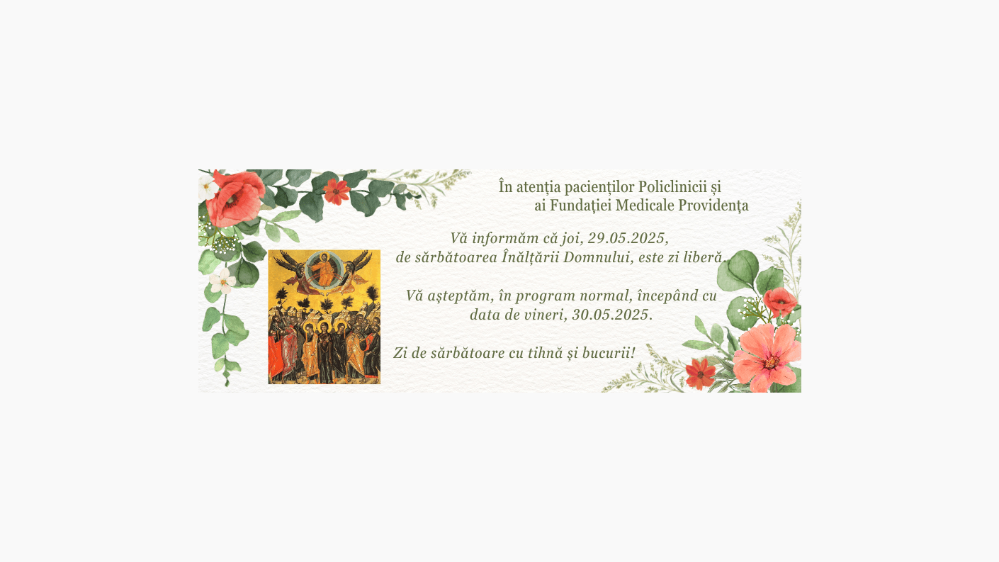 De Sărbătoarea Înălțării Domnului - zi liberă la Policlinica și Fundația Medicală Providența